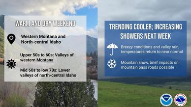 It’s going to be warm and dry, with valley highs reaching the upper 50s to 60s across western Montana and north-central Idaho.