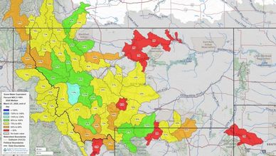 [3/28 5:53am] Here's the current status of snow water (water in the existing mountain snowpack) divided by subbasin. Some areas are close to normal (including the Yellowstone Headwaters & Clarks Fork) while most are below normal. The good news is that we will be adding some snow to the mountains next week.